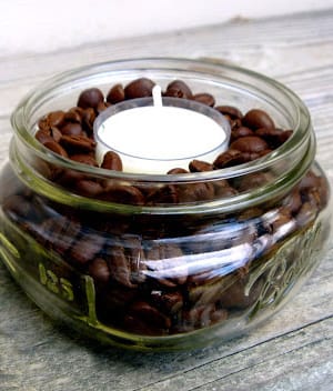 Place some tea lights in a bowl of coffee beans. Within 10 to 30 minutes, your home will start smelling like a cozy little coffee shop.